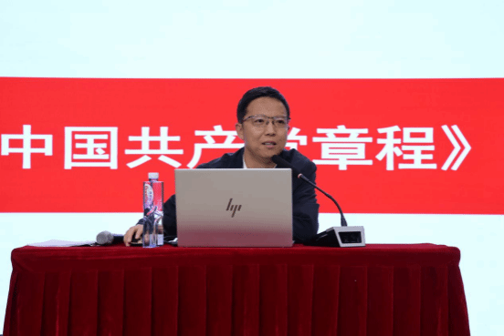 学校党委宣传统战部部长武乔军以《中国共产党章程》为核心内容,深入阐释了党章的制定历程、修订意义与核心要义,重点解读党的性质、宗旨、指导思想、奋斗目标以及党员的权利与义务。他引导学员从党章文本中感悟党的初心使命与奋斗逻辑,推动大家深入思考“为什么入党、入党做什么、为党留什么”,切实推动党章精神内化于心、外化于行。