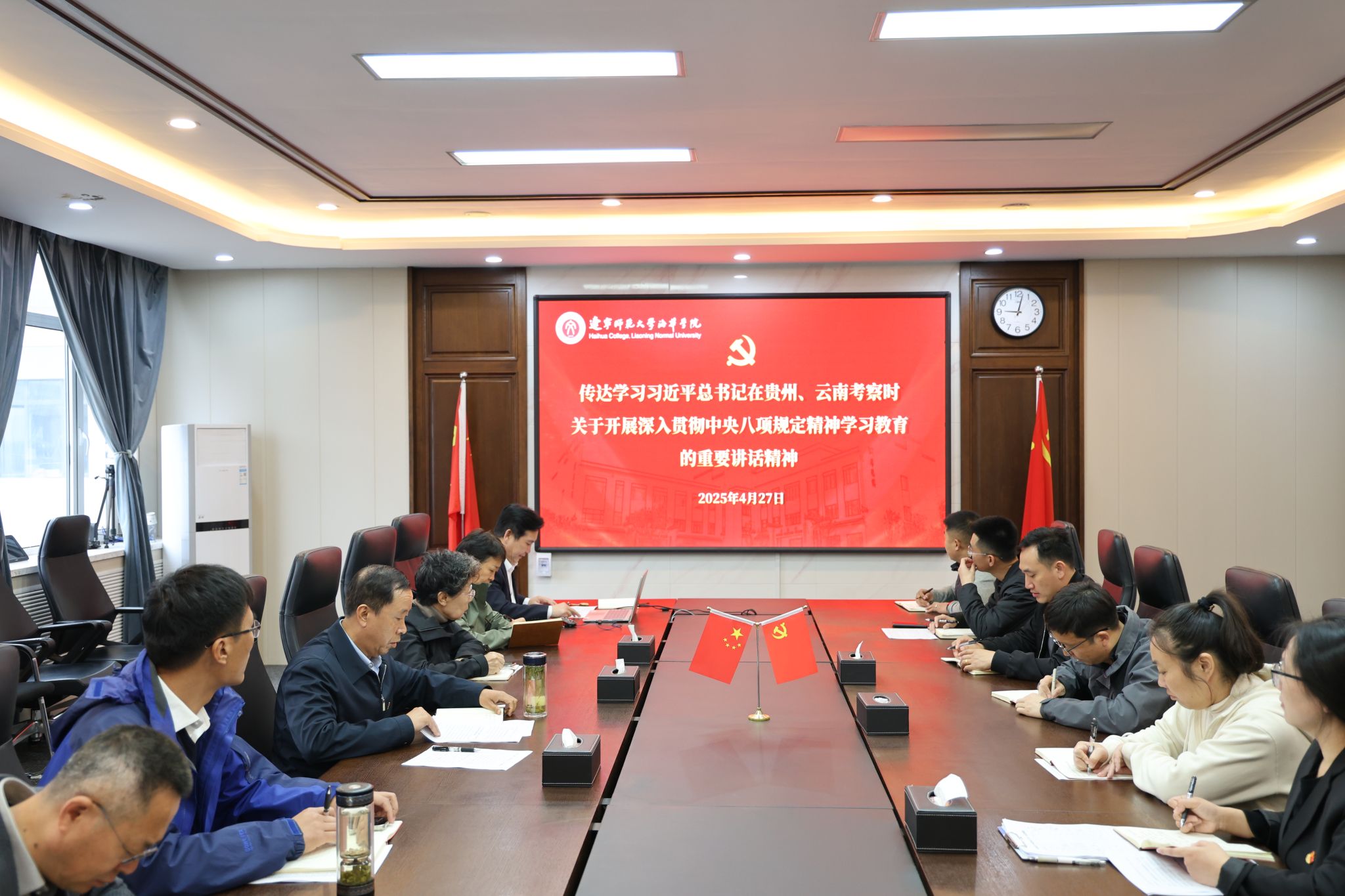 会上,党委副书记、校长张守波传达学习了习近平总书记在贵州、云南考察时关于开展深入贯彻中央八项规定精神学习教育的重要讲话精神。