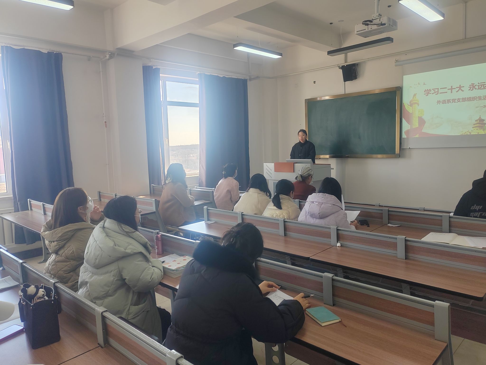 为深入学习贯彻习近平新时代中国特色社会主义思想和党的二十大精神,严格党的组织生活,强化党员教育管理监督,坚定不移推动全面从严治党向纵深发展、向基层延伸。2023年3月15日,外语系党支部召开组织生活会及开展民主评议党员工作,组织生活会由外语系党支部宣传委员刘思奇主持。