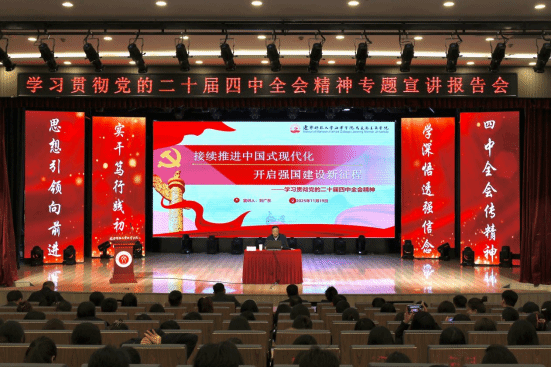 11月19日下午,机关党支部、数学科学学院党支部、体育学院党支部、教育科学学院党支部在西校区厚德楼三楼报告厅联合举办学习贯彻党的二十届四中全会精神专题宣讲报告会。会议特邀学校党委学习贯彻党的二十届四中全会精神宣讲团成员、马克思主义学院院长刘广东教授作专题宣讲。机关党支部书记赵卫家同志主持报告会,各党支部党员、入党积极分子及入党申请人等200余人参加学习。